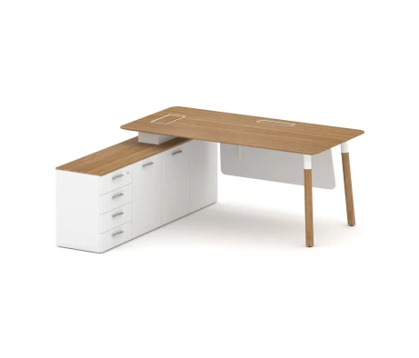Стол руководителя на 2-х опорных тумбах (левый) 180х180x73,5 Норман / Norman